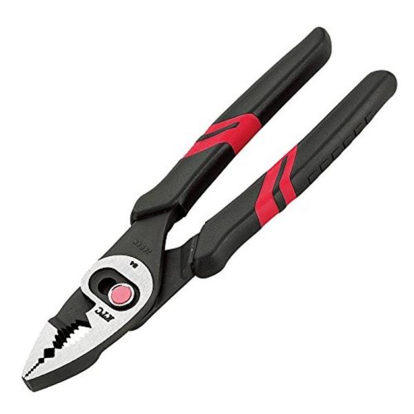 プライヤーを使うケースはあまり多くないが、ケーブル式のクラッチの遊び調整などでは必要です。ボルトやナットのような角のない部品である場合が多く、申し訳程度の筋が入っていたりします。ここを車載工具のプライヤーで回すとだいたい削れます。くわえた跡がガッツリ残りますよね。把握力が低いのにくわえる部分の仕上げが悪いから傷がつくだけで回ってくれません。で、さらに力を入れと回るが大きな傷が残ります。なるべく使いたくない工具です。